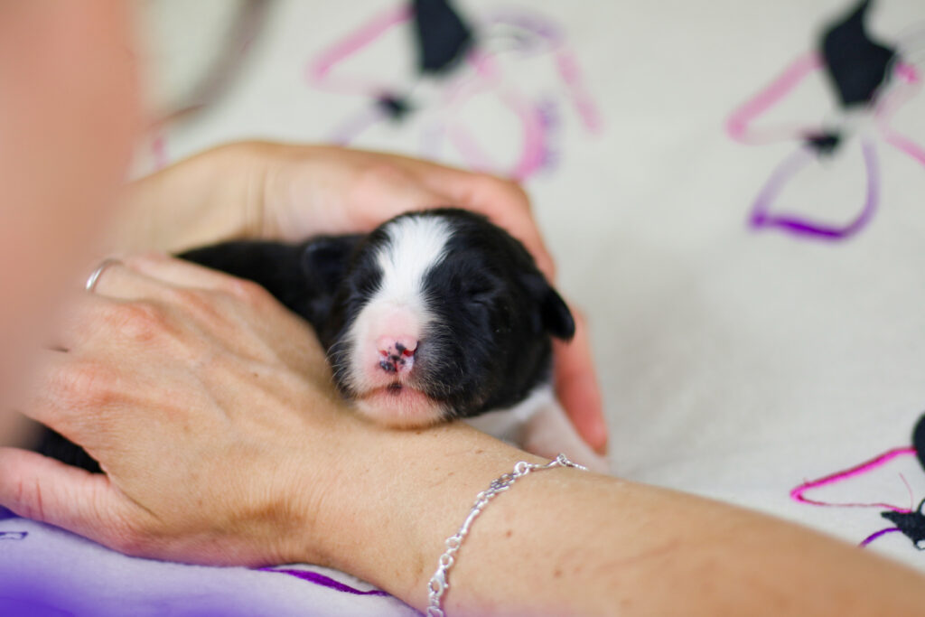 Hier also der Geburtsbericht. Frenny war die ganze Nacht auf den 04. schon sehr unruhig und hat viel gehechelt. Früh ging es dann los und nach einer Weile kam der erste Welpe (Rüde) auf die Welt. Dann ließ sich Frenny gute 2 h Zeit bis eine Hündin auf die Welt purzelte. Nach 3 Stündiger Pause ging leider nichts mehr voran und wir machten uns auf den Weg in die Tierklinik. Dort angekommen und ein Röntgenbild später entschieden wir uns für einen Kaierschnitt um die zwei Welpis nicht zu gefährden. Am späten Nachmittag konnten wir dann mit unserem Kleeblatt nach Hause und uns ein bisschen erholen. Wir haben also zwei Jungs und zwei Mädels – alle black/white. Hiermit schließe ich das Trächtigkeitstagebuch und weiter geht’s dann im Wurftagebuch.