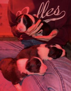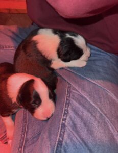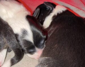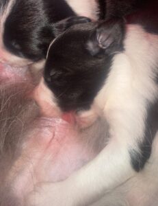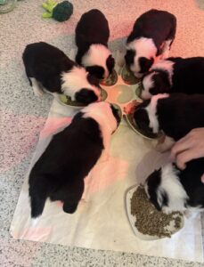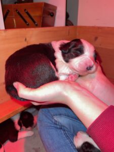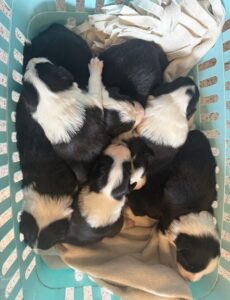 Und schon sind unsere 7 Zwerge da. Pünktlich zum Termin am 18.03. hat Lazy in Rekordzeit (2,5 h) alle 7 Welpen geboren. Ohne Probleme und mit perfekter Hingabe hat sie sich direkt vorbildlich um ihre Welpis gekümmert und wir sind super stolz auf sie. Alle Welpen sind schwarz weiß. Wir haben 5 Mädels und 2 Jungs 😉 Ein paar erste Bilder gibts dann noch im Wurftagebuch und hiermit schließe ich das Trächtigkeitstagebuch des N-Wurfs.