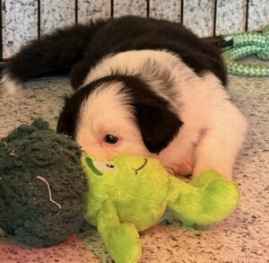 Lazy ist schon ein kleiner Kugelfisch und bekommt auch schon eine Weile angepasstes Futter, damit sie und die Welpen perfekt versorgt sind. Wir haben mit den ersten Vorbereitungen begonnen und die Welpen Halsbänder gemacht 😉 Diese bekommen die Zwerge dann später zum Üben.