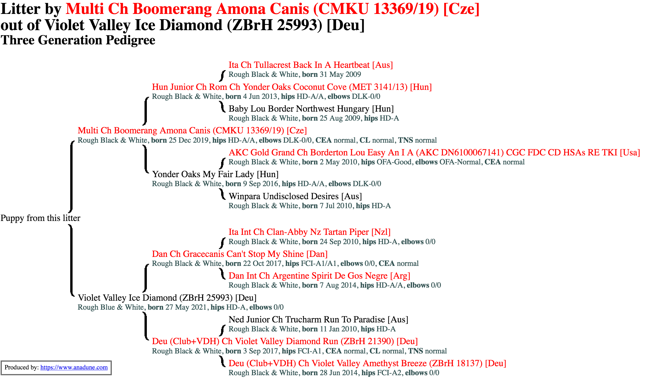 C.I.E. & C.I.B. Boomerang Amona Canis "Champ"